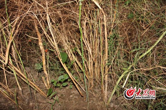 9月25日下午,大眾網記者跟隨張青偉來到西張村西邊的河灘地上,這就是蘆筍種植基地,張青偉家的蘆筍也種在這里?此埔黄氖彽妮锊菹,一株株青筍正悄悄地生長。張青偉隨手撥開,輕輕掰斷一根20公分長有小手指粗細的青筍給記者看。他說,蘆筍的壽命在12年左右,從第三年開始采摘,蘆筍加工廠來收,3元/斤,零賣價格至少翻一番。
