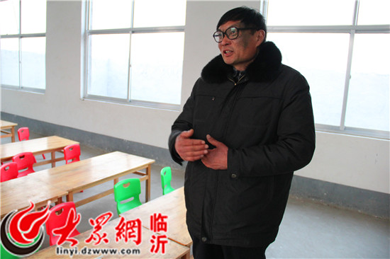 “第一書記”向記者介紹新建幼兒園的配套設施