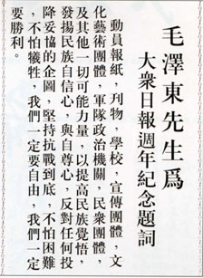 毛澤東同志為大眾日報創刊一周年題