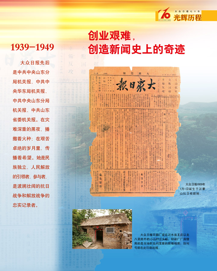 12月31日1939年1月1日,《大眾日報》在沂水縣城西四十余里的王莊——中共中央山東分局、八路軍山東縱隊指揮部駐地創刊。《大眾日報》70余年的歷史,是一代代大眾報人... -