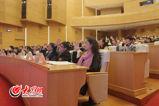 山東省青聯十二屆一次會議閉幕式上,青聯委員們正在舉手表決省青聯第十一屆常委會工作報告 記者 馬俊驥 攝
