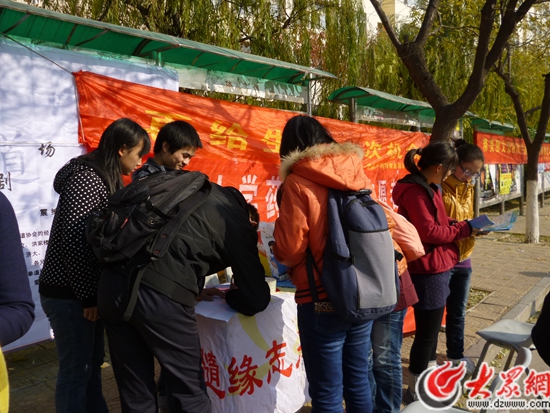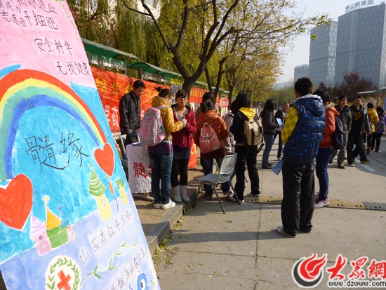為了拯救更多的生命,近年來,中國紅十字會建立了中華骨髓庫以增加配型成功的可能性。2012年以來,在山東省紅十字會的建議及支持下,我們山東大學藥學院青志協開展了以“無言大愛,攜手共創生命奇跡”為主題的髓緣活動。目前,我們已先后開展了造血干細胞捐獻服務志愿者招募活動以及捐獻造血干細胞的宣傳活動,并取得了完滿的勝利,成功建立起了干細胞捐獻志愿服務大隊,并招募到一批志愿加入中華骨髓庫的的同學。