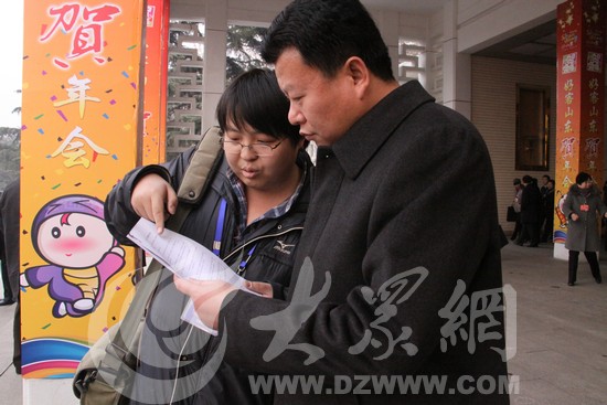市中區(qū)區(qū)長王勤光在聽大眾網(wǎng)記者介紹《“山貨大爺”的進(jìn)城路》系列報道,反映居住在礦村村民們熱切希望通公交的心情。