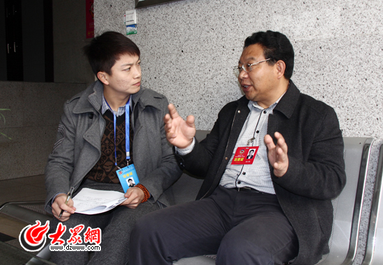 濟(jì)南市政協(xié)委員、市農(nóng)業(yè)局局長(zhǎng)趙玉海(右)接受大眾網(wǎng)記者專(zhuān)訪(fǎng)。
