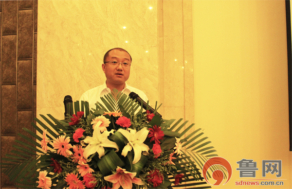 圖為魯網(wǎng)常務(wù)副總經(jīng)理魏子杰在特色山東館啟動(dòng)現(xiàn)場(chǎng)致辭