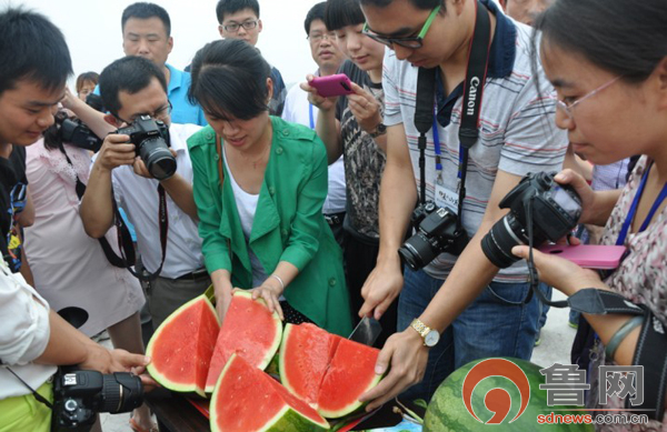 魯網(wǎng)6月18日訊(記者 劉梅婷)今天下午,“聚焦美麗山東——第九屆中國(guó)網(wǎng)絡(luò)媒體山東行”采訪團(tuán)抵達(dá)聊城市匯隆無(wú)公害瓜菜合作社,領(lǐng)略這里現(xiàn)代農(nóng)業(yè)的風(fēng)采。眼下正是西瓜上市的時(shí)節(jié),在聊城經(jīng)濟(jì)開(kāi)發(fā)區(qū)許營(yíng)鎮(zhèn)姚莊村,隨處可見(jiàn)的“許營(yíng)西瓜”成了搶手貨。田間地頭林立的西瓜收購(gòu)點(diǎn)和排成長(zhǎng)龍的運(yùn)瓜車,讓村民心里樂(lè)開(kāi)了花。