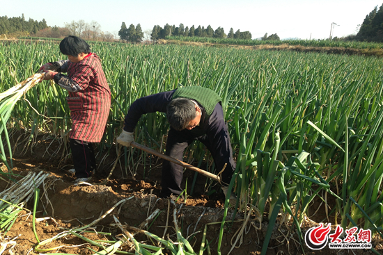 蔥農們在忙碌地刨蔥。 大眾網記者 劉明明 攝
