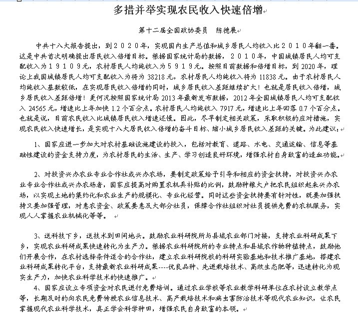 《多措并舉實現農民收入快速倍增》提案部分建議。