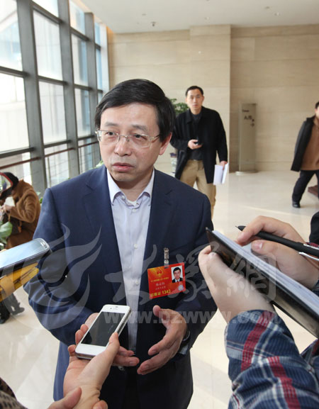 十二屆全國人大代表、濟寧市委副書記、市長梅永紅談大部制改革。(特派記者盛堃 攝)