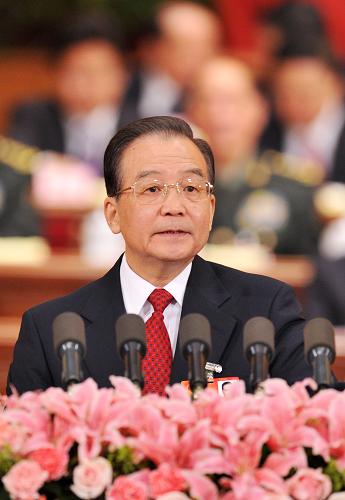 3月5日,第十一屆全國人民代表大會第四次會議在北京人民大會堂開幕。國務院總理溫家寶作政府工作報告。 新華社記者 黃敬文 攝