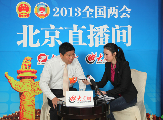 全國人大代表、山東省教育廳副廳長張志勇在大眾網北京直播室與網友連線(特派記者 韋輝 攝)