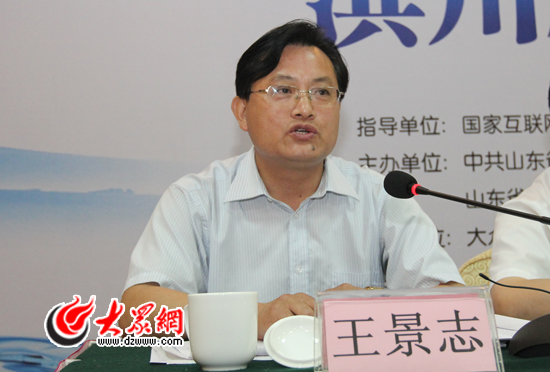 濱州市環境保護局副局長、新聞發言人王景志回答記者提問。大眾網記者 馬鑫 攝