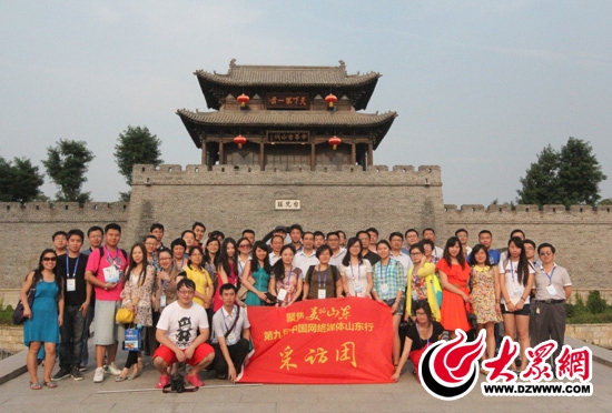今天下午,“聚焦美麗山東——第九屆中國網絡媒體山東行”西線采訪團來到棗莊市臺兒莊古城采訪參觀,記者們在古城門口合影留念。 記者 郭豪 攝