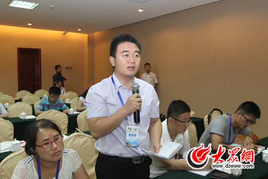 大眾網(wǎng)記者陳宏發(fā)提問濱州市有關(guān)“糧豐林茂、北國江南”的建設問題。大眾網(wǎng)記者 馬鑫 攝