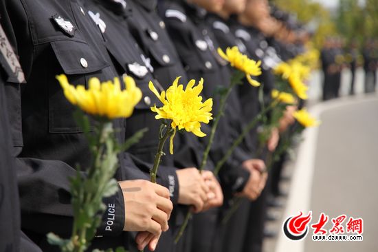 前來送行的隊伍,不僅有公安、市直機關工作人員、武警戰(zhàn)士還有學生、農(nóng)民工、出租車司機等不同身份不同職業(yè)的群眾,他們自發(fā)的站在道路兩旁,手舉鮮花、橫幅,胸前佩戴小白花,表達自己對英雄的悼念之情。當靈車駛過時,不少群眾忍不住落下眼淚。