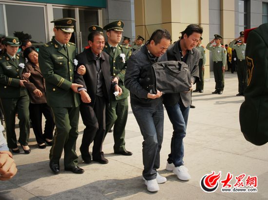 今天上午11點48分,G115次高鐵列車抵達滕州東站,在公安干警及武警官兵的攙扶下,神色蒼白憔悴,抽噎呢喃著“長春,長春”(注:長春是劉洪坤的小名)的劉洪坤親屬抱著他的骨灰及遺像,登上了送劉洪坤“回家”的車。