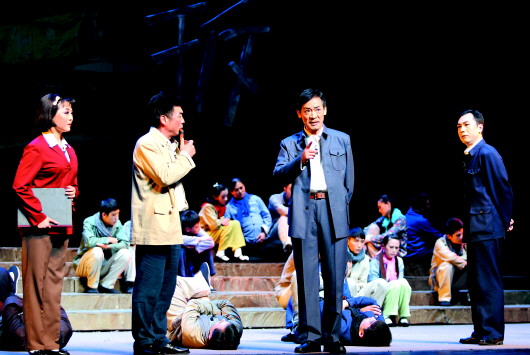 渾厚的伴唱聲,精彩的舞臺呈現,動人的感人場面,深刻的精神內涵——《百姓書記》這出新創作的現代呂劇給我留下了極為深刻的印象。這是少有的把政治宣傳題材做成藝術精品的好劇目。自從2011年山東省呂劇院帶著這出戲來北京,參加文化部舉辦的“慶祝建黨90周年——全國現代戲優秀劇目展演”到現在,這出戲歷經三次大的修改,在100多場的演出中日臻成熟,并成為“十藝節”開幕式演出劇目,這足以看出山東省呂劇院全體演職員的努力拼搏精神、藝術追求,為社會、為人民奉獻好的精品力作的社會責任感。