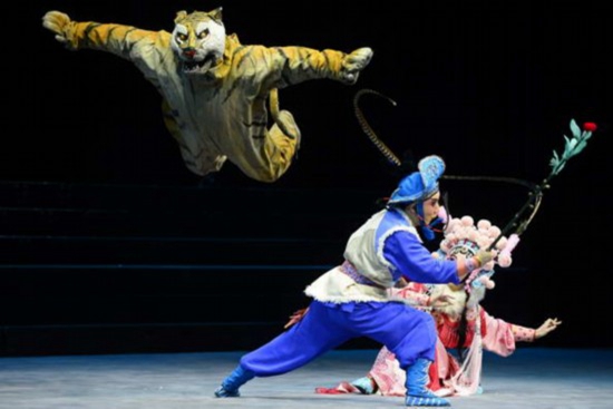 擔(dān)任《飛虎將軍》導(dǎo)演和藝術(shù)總監(jiān)的翁國生表示,《飛虎將軍》不僅集合了現(xiàn)今戲曲界的精英,而且還開創(chuàng)了浙京武戲的新紀(jì)元——前半場玩體力,累身;后半場武戲文唱,累心,“《飛虎將軍》的人物性格卻很復(fù)雜,就像莎士比亞的《麥克白》一樣,內(nèi)心戲占了很大比重。”