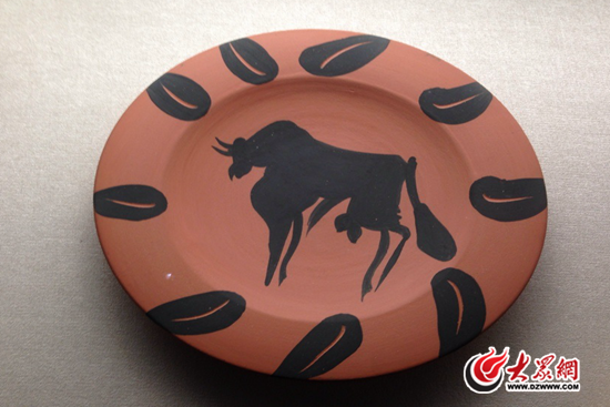 畢加索的蝕刻畫《畫家拾筆》。 記者 劉明明 攝