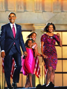 美國(guó)人一向是崇拜個(gè)人偶像的,無論是好萊塢還是白宮,這個(gè)規(guī)律從來不曾改變過,特別是當(dāng)風(fēng)流倜儻的總統(tǒng)配上氣質(zhì)高貴的第一夫人,更能讓選民瘋狂。早在肯尼迪帶著夫人杰奎琳出來選總統(tǒng)時(shí),就已經(jīng)在美國(guó)國(guó)內(nèi)掀起追星般的狂熱。杰奎琳引領(lǐng)的時(shí)尚風(fēng)潮也經(jīng)久不衰,法國(guó)第一夫人卡拉·布呂尼首次隨總統(tǒng)薩科齊出訪英國(guó)的時(shí)候,就以一襲“杰奎琳式”的洋裝驚艷亮相希思羅機(jī)場(chǎng)。如今奧巴馬處處被人拿來與肯尼迪比較,而現(xiàn)年44歲、身高1.8米、儀態(tài)端莊的米歇爾,就有人稱贊她將杰奎林·肯尼迪的風(fēng)度和勞拉·布什的魅力集于一身。