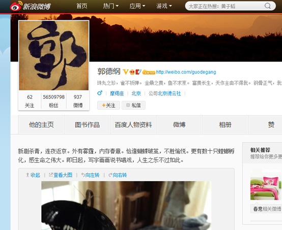 圖為郭德綱微博