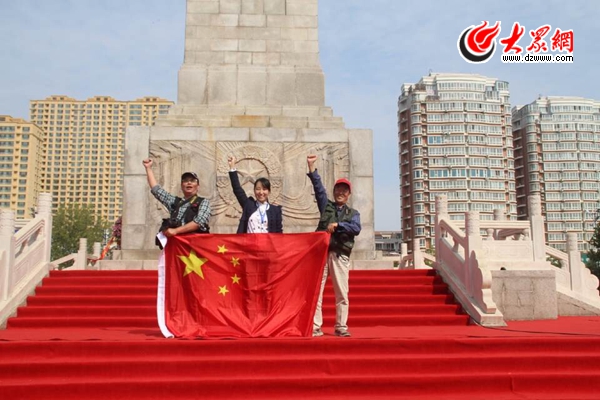 大眾網聊城記者站的全體同事來到光岳樓前,和國旗合影,為中國點贊!