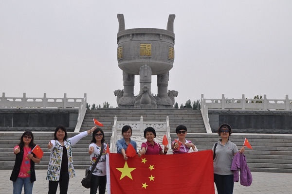 貴陽游客在臨沂五賢祠與國旗合影為中國點贊