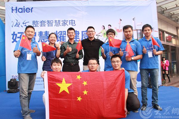 9月26日 海爾明星家電智慧城市行全國巡展來到臨沂 圖為海爾工作人員在臨沂活動現場為中國點贊