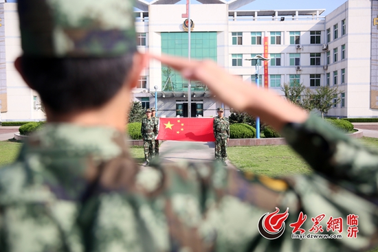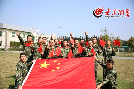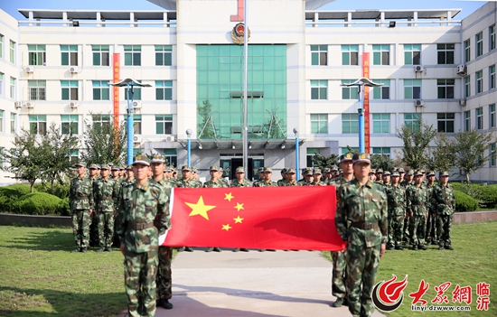 10月1日,武警臨沂支隊剛入伍新兵與國旗合影,為中國點贊