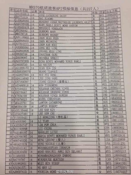 #馬航飛機失聯(lián)#【MH370航班乘客名單】馬來西亞航空公司飛往北京的MH370航班,于凌晨2:40失聯(lián)。機上共有239人,載有154名中國乘客。據(jù)邊檢提供的名單,機上有兩名中國幼童(一男一女)。