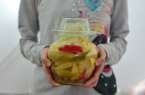 還記得5月9日央視播出的“舌尖上的中國第二季第四集——家常”里那可口的四川泡菜嗎,然后請再看照片,是不是這色澤、腌菜種類,甚至泡菜壇子都和舌尖里的一摸一樣,對了,你沒看錯!這就是師傳我姥姥由老媽做的川味泡菜,由于我姥姥祖籍四川,由此就將這門四川獨有的泡菜絕技傳給了我媽,這可以說算是祖?zhèn)鲉峁?/p>