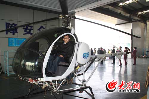 采訪團(tuán)成員坐進(jìn)直升機(jī)內(nèi)親身體驗(yàn)