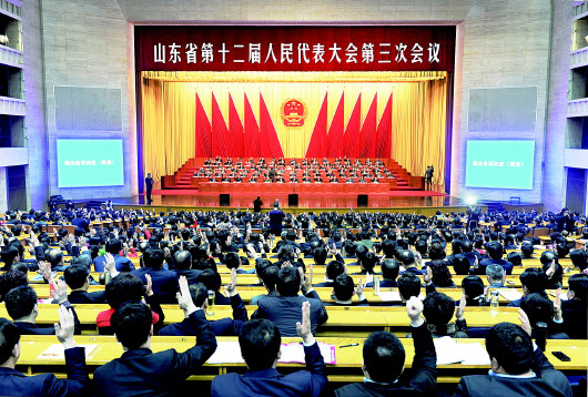 山東省十二屆人大三次會議在濟南勝利閉幕