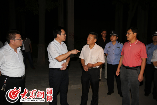 淄博市環保局局長于照春帶隊夜查建陶企業。