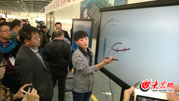 27日下午,聚焦“一圈一帶”第十屆中國(guó)網(wǎng)絡(luò)媒體山東行采訪團(tuán)來(lái)到山東聊城茌平瑞華電子科技有限公司采訪。瑞華電子自主開發(fā)了電磁觸摸系統(tǒng),跟以往的紅外觸摸相比,可以根據(jù)下筆輕重緩急完美還原原筆跡,在液晶屏上書寫?yīng)q如在黑板上板書。 記者 馬俊驥 攝