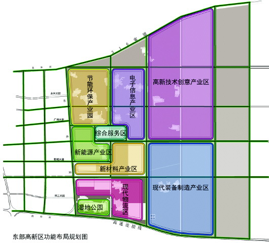 <東部高新區(qū)規(guī)劃面積40平方公里,主要引進(jìn)高新技術(shù)及商貿(mào)物流等節(jié)能環(huán)保項(xiàng)目,已有東方雨虹、北京創(chuàng)導(dǎo)、山東蘭劍物流、順?lè)焦軜I(yè)、瑞那斯節(jié)能門(mén)窗幕墻等一批實(shí)力雄厚的上市公司和行業(yè)龍頭進(jìn)駐。