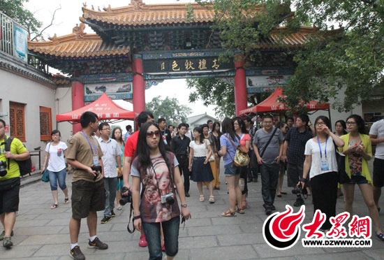 今天上午,西線采訪團(tuán)來(lái)到棗莊市嶧城區(qū)青檀寺采訪參觀。記者 郭豪 攝