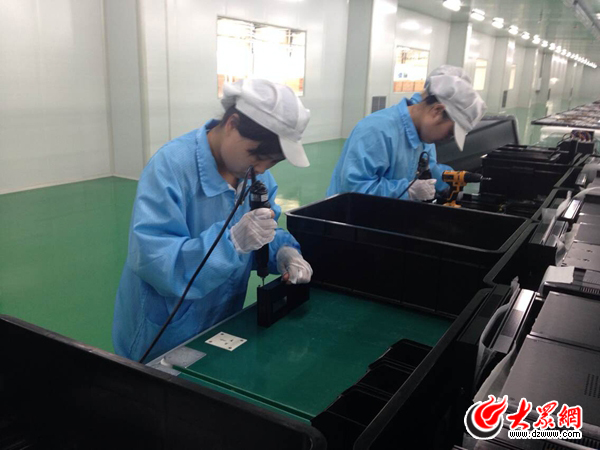 27日下午,聚焦“一圈一帶”第十屆中國網(wǎng)絡(luò)媒體山東行采訪團(tuán)來到山東聊城茌平瑞華電子科技有限公司采訪,圖為瑞華電子工人在測試組裝好的產(chǎn)品。記者 馬俊驥 攝