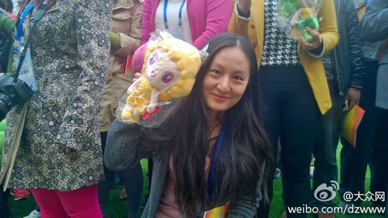 在菏澤,菏澤牡丹吉祥物“丹妮兒”贏得了“聚焦‘一圈一帶’——第十屆中國網絡媒體山東行”采訪團記者的追捧,很多記者愛不釋手。