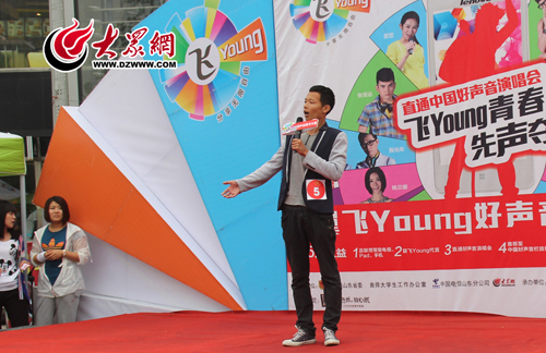 本次活動由共青團山東省委、山東電信、大眾網聯合主辦,好聲音學員王洪迪、城市之音資深DJ安可、2013年飛young校園好聲音前三名之一張益作為評委導師親臨現場。濱州的早晨雨一直下,但絲毫沒有影響選手的熱情,活動由上午10時正式開始,截止下午5時30分近百人報名參賽,年紀最小的只有6周歲,最大的已經59歲。