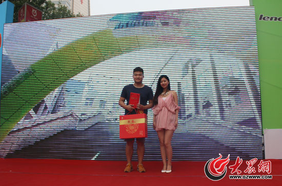 2013年天翼校園好聲音冠軍徐亞飛為二等獎獲得者彭木頒獎