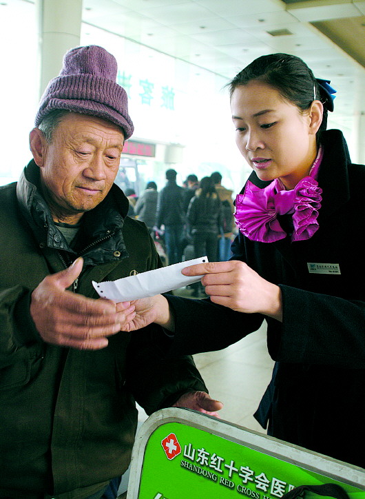 1月3日,濟南長途汽車總站旅客熙熙攘攘,春運氣息漸濃。在車站總服務臺,雙語站務員單笑嬌微笑著為旅客服務。
