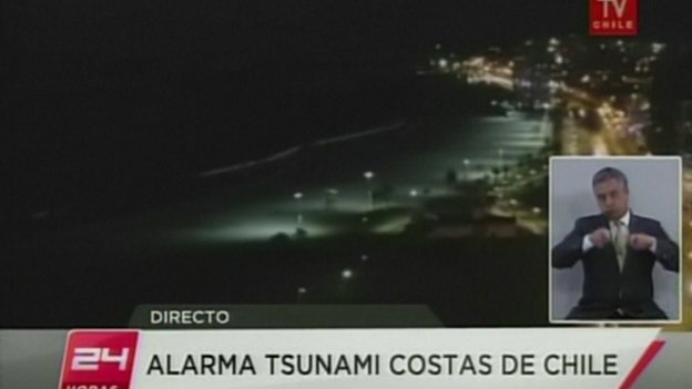 智利要求相關(guān)地區(qū)人員進(jìn)行疏散,以預(yù)防海嘯。(圖片來(lái)源英國(guó)廣播公司) 中國(guó)日?qǐng)?bào)網(wǎng)4月2日電(信蓮)據(jù)英國(guó)媒體報(bào)道,智利國(guó)家災(zāi)害應(yīng)急辦公室(ONEMI)稱,初步報(bào)告顯示,1日晚發(fā)生在智利北部的地震引發(fā)山體滑坡,一些公路和高速路因此受阻。 北京時(shí)間2日7時(shí)46分,智利西北部沿海發(fā)生8級(jí)以上地震,震源距智利城市伊基克西北僅99公里。當(dāng)?shù)仉娨暸_(tái)畫(huà)面顯示,路燈供電仍然正常,街頭已經(jīng)堵滿汽車,無(wú)法動(dòng)彈。據(jù)悉,當(dāng)?shù)鼐用裾谙虬踩貐^(qū)撤離。