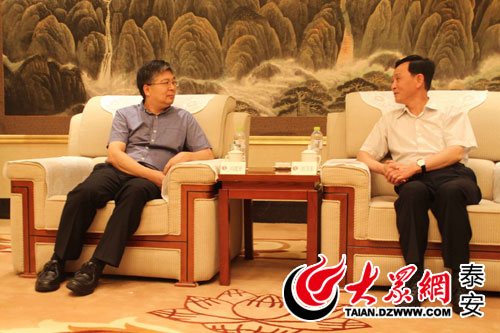 泰安市委常委、副市長劉衛東(右)會見山東大學副校長劉建亞(左)。