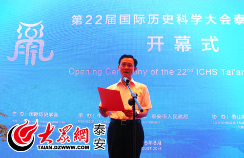 劉衛東對會議的召開表示祝賀,對各位專家學者的到來表示歡迎,并介紹了泰安市的基本情況。他說,泰山文化不僅屬于中國,也屬于世界和全人類。泰山憑借其豐厚的歷史文化資源,越來越成為國際歷史學者所關注的學術熱點。國際歷史科學大會是當今世界最重要和規模最大的歷史學會議,被譽為“史學奧林匹克”。相信經過國際歷史科學大會專家學者們的深度解讀,泰山文化必將得到更好地傳承與發展,泰安、泰山也將會以更加開放的姿態闊步走向世界。希望各位專家學者在泰期間多走走、多看看,多為泰山文化的傳承與發展、泰安經濟社會發展提出寶貴意見。