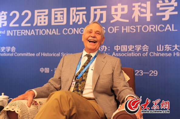 8月27日,第22屆國際歷史科學大會上,美國史學家鮑德威接受記者采訪。大眾網記者 王長坤 攝