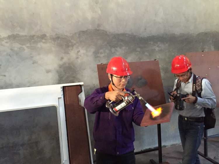 12日,在濟南圣泉集團股份有限公司“輕芯鋼”項目生產(chǎn)車間內(nèi),車間生產(chǎn)主任王慶冀當場給記者做起試驗。他拿起一桿燃燒溫度達1700攝氏度的乙烷噴槍,朝一塊厚度僅一厘米多的輕芯鋼板材進行噴射,板材表面遇火苗后開始碳化變黑,但一直燒了15分鐘,這塊輕芯鋼并未燃燒,只輕微地冒出幾縷煙。記者用手觸摸噴槍噴射位置的背后,絲毫不覺得燙手。王慶冀說,輕芯鋼是一種新型復合材料,其強度比玻璃鋼堅硬結(jié)實,密度重量只有玻璃鋼的五分之一,而且安全阻燃。這種新型復合材料,此前只有德國一家企業(yè)能夠生產(chǎn),濟南圣泉集團花了費兩年多時間研發(fā),目前技術(shù)成熟,產(chǎn)品已大批量投放市場,今年市場有望實現(xiàn)10倍增長。