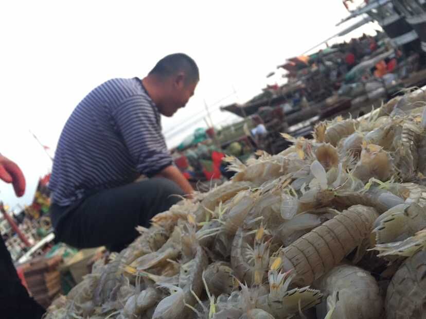 船老大們洋溢著幸福的笑容,把一船船活蹦亂跳的蝦虎和魚蟹搬上岸。
