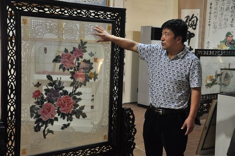 “新常態(tài)·新定位·新提升——第十一屆中國網(wǎng)絡(luò)媒體山東行”東線采訪團(tuán)記者來到蕓祥繡品公司采訪。