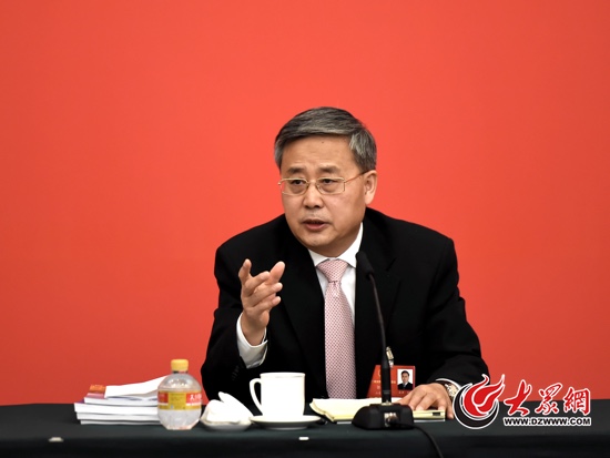 大眾網(wǎng)北京3月7日訊(特派記者 邢玉軍 樊思思 馬俊驥 王長坤 趙洪棟)今天下午3點,十二屆全國人大四次會議山東代表團(tuán)舉行開放團(tuán)組活動,全國人大代表、山東省委副書記、省長郭樹清回答中外記者提問。